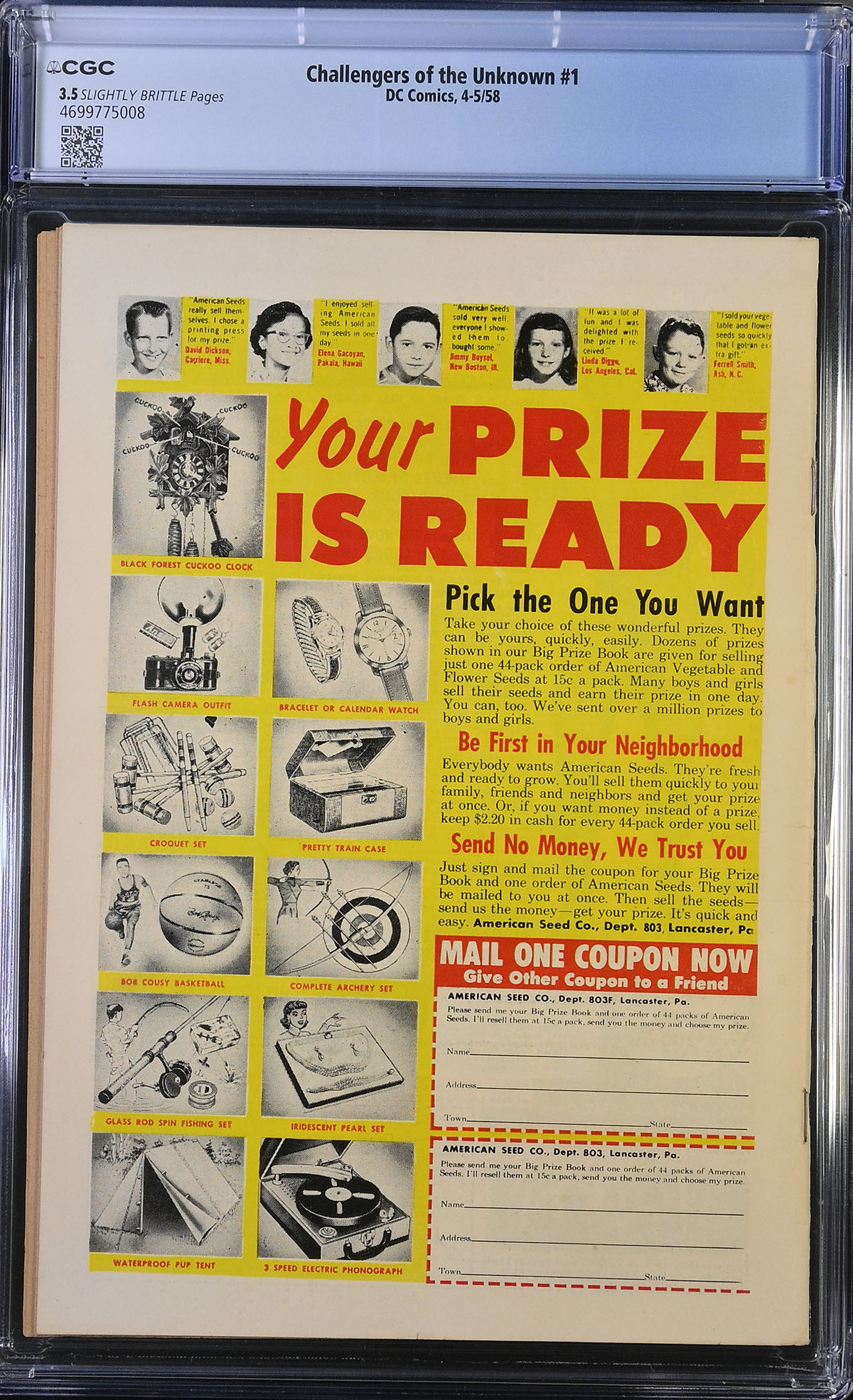 Challengers of the Unknown #1 CGC VG- 3.5 Slightly Brittle