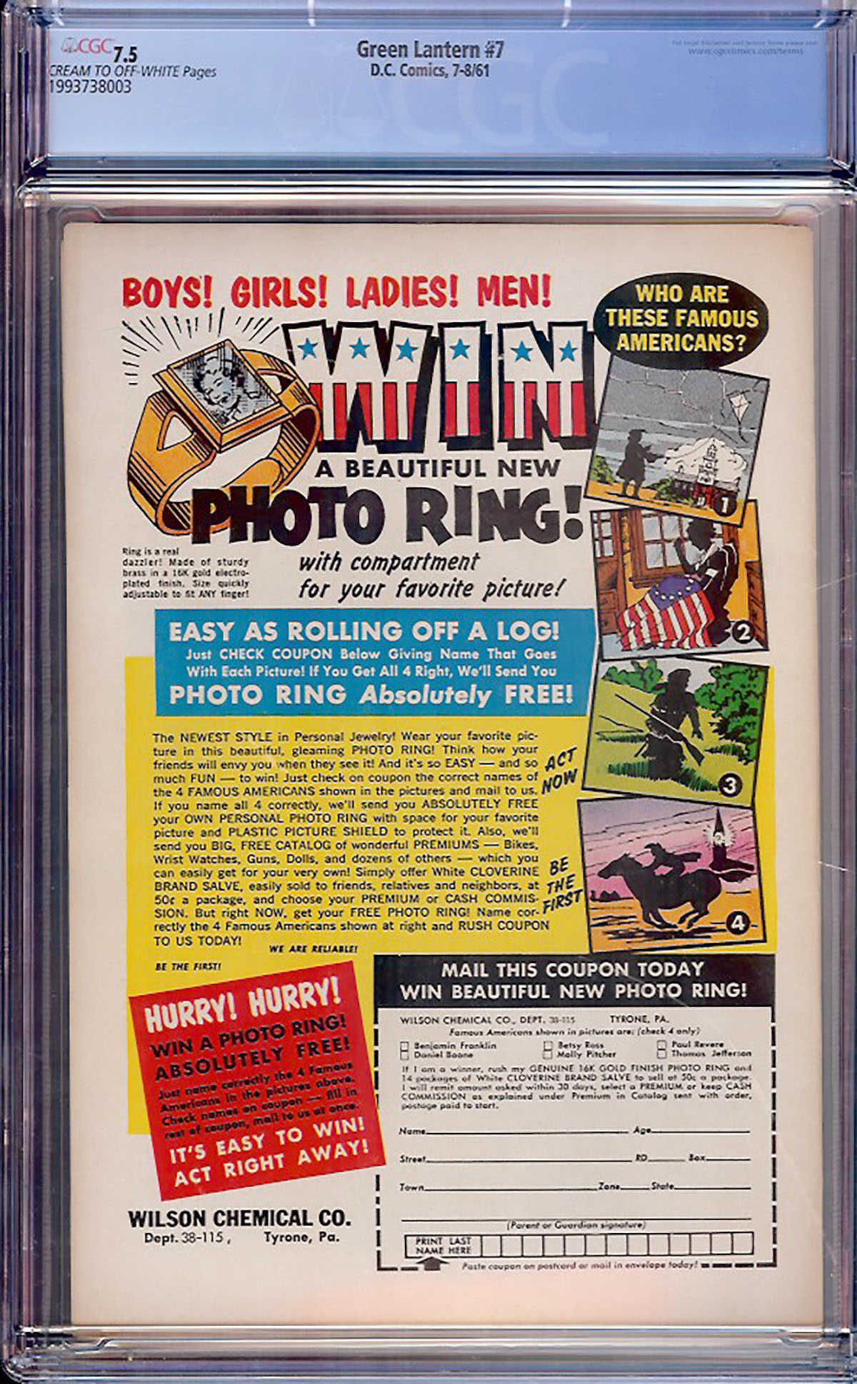 Green Lantern #7 CGC VF- 7.5 Cream to Off-White