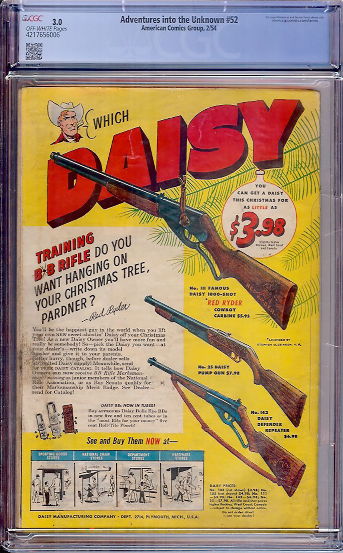Adventures into the Unknown #52 CGC G/VG 3.0 Off-White