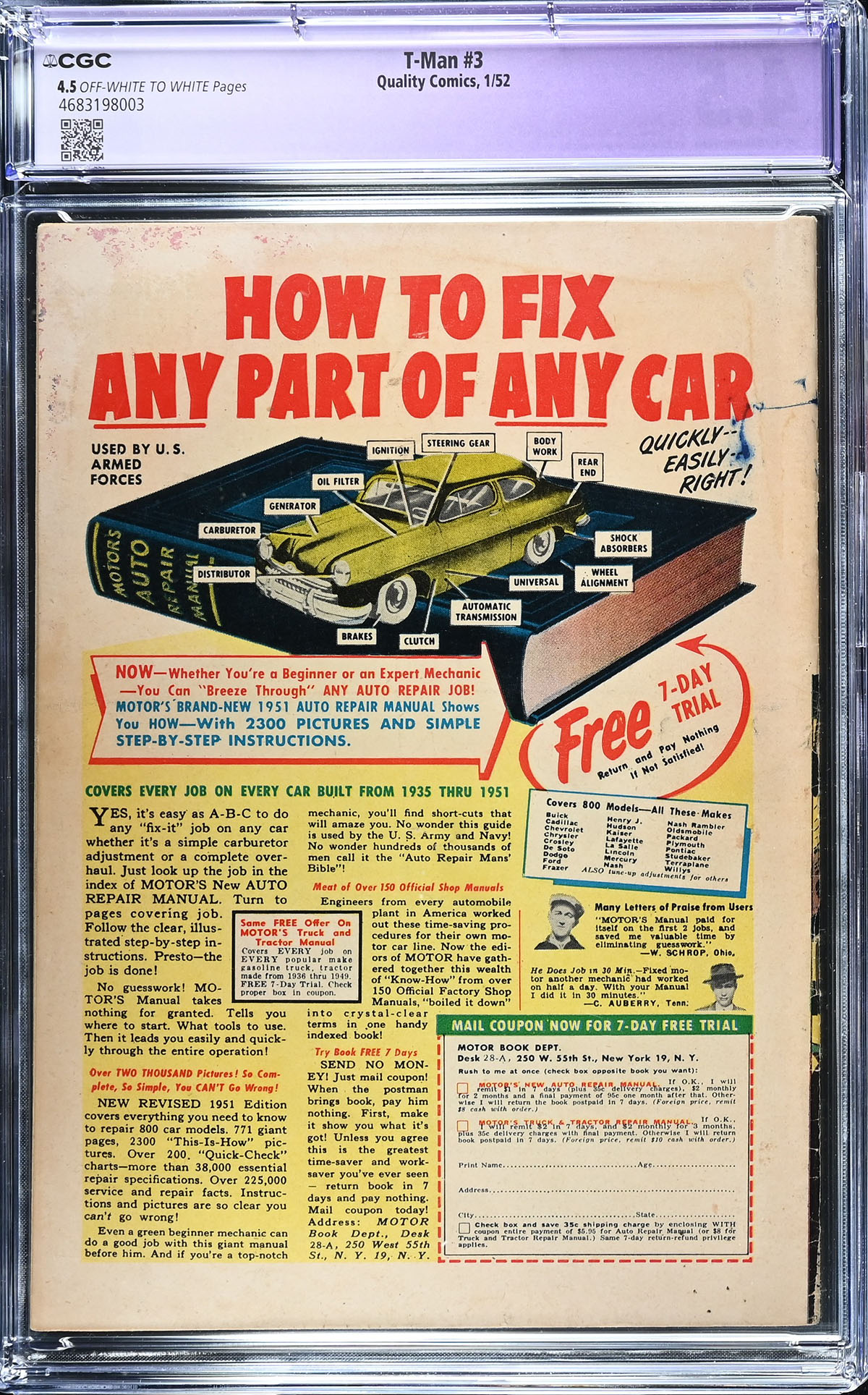 T-Man #3 CGC APPARENT VG+ 4.5 Off-White to White