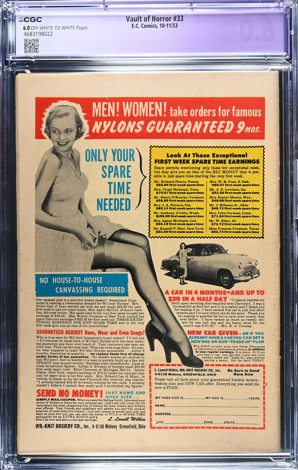 Vault of Horror #33 CGC APPARENT F 6.0 Off-White to White