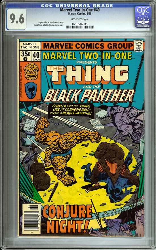 Features a Black Panther/Thing tango against a deadly vampire. A fresh 9.6 copy for your collection. There is one copy graded at 9.8 (the only one better than the copy in question).