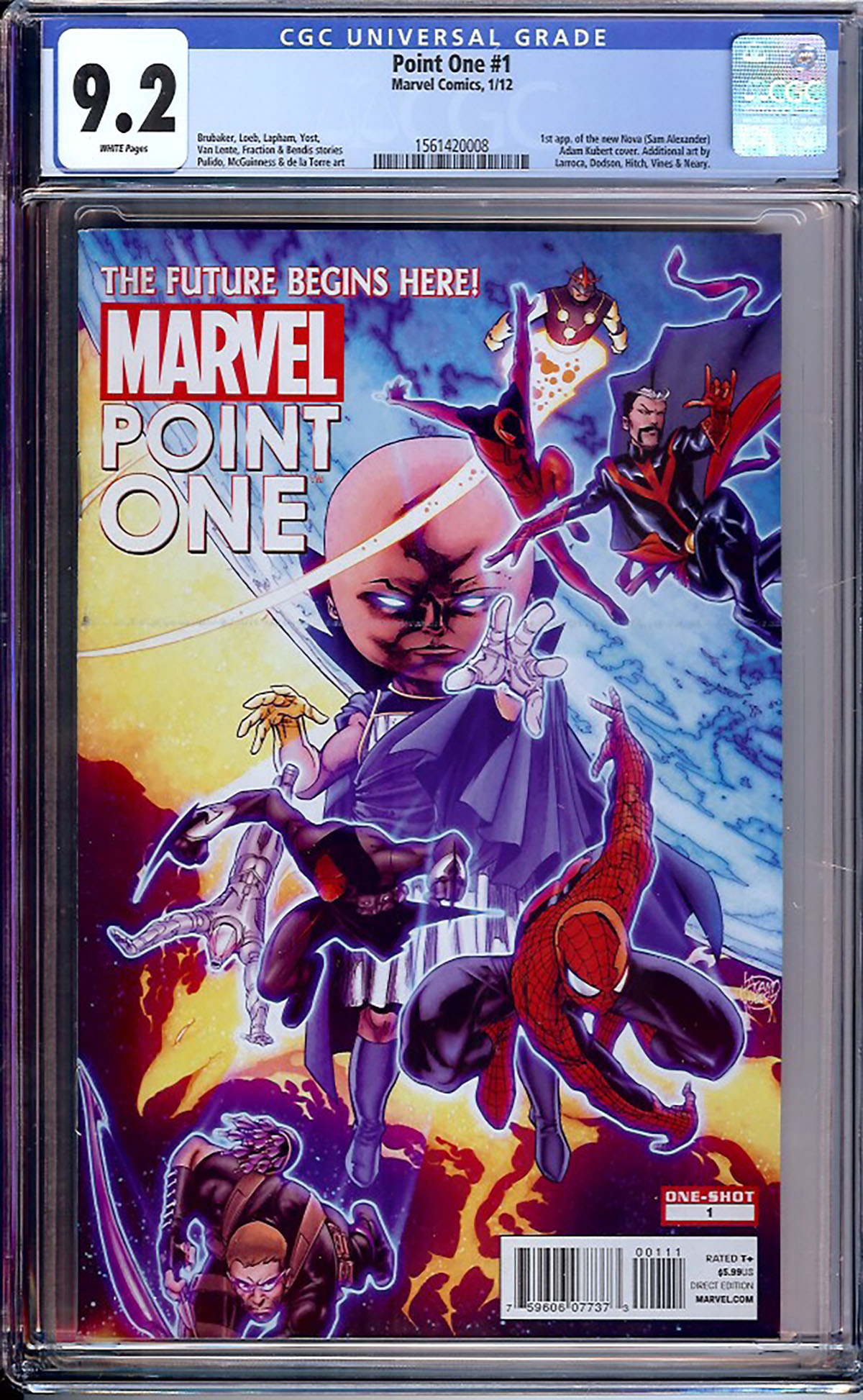 First appearance of the new Nova (Sam Alexander). Nick Bradshaw cover. Additional art by Larroca, Dodson, Hitch, Vines and Neary. Brubaker, Loeb, Lapham, Yost, Van Lente, Fraction and Bendis stories. Pulido, McGuinness and de la Torre art.