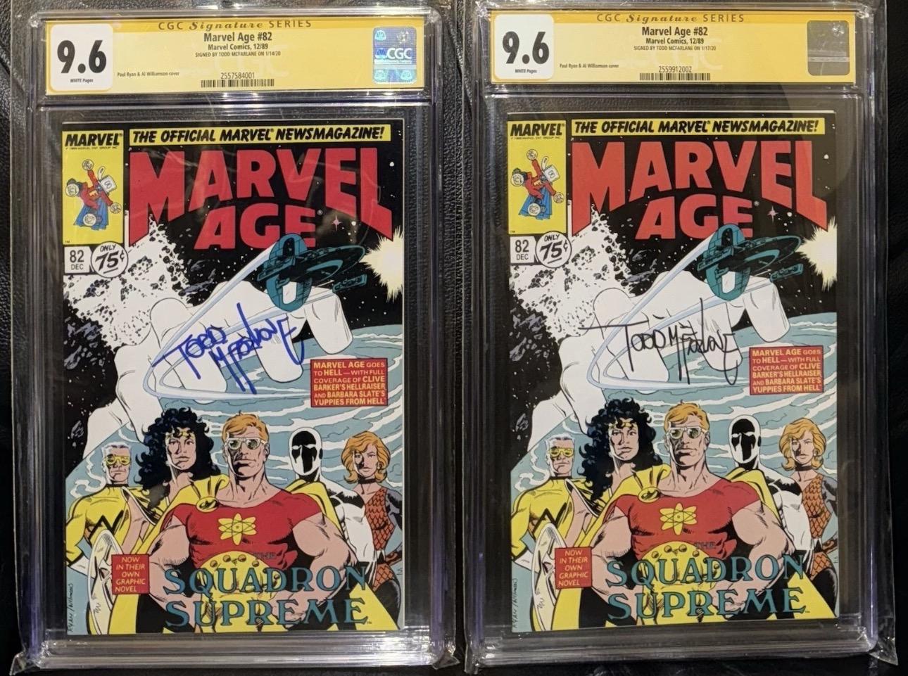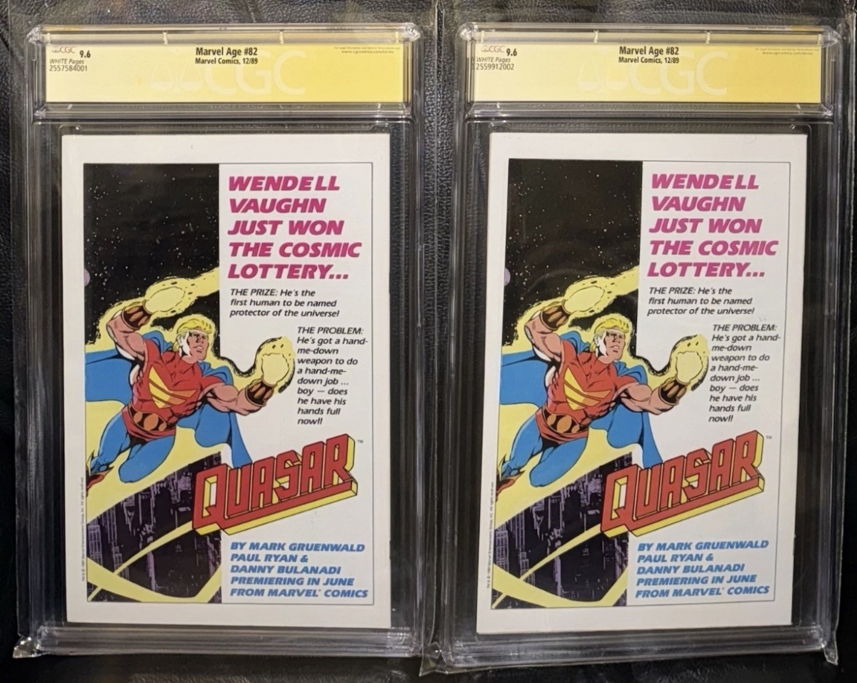 This listing includes two CGC 9.6 Mcfarlane Signature Series slabs of Marvel Age 82 featuring the first publishing of Cable and Stryfe prior to release in New Mutants 87. Nice investment lot. Enjoy!