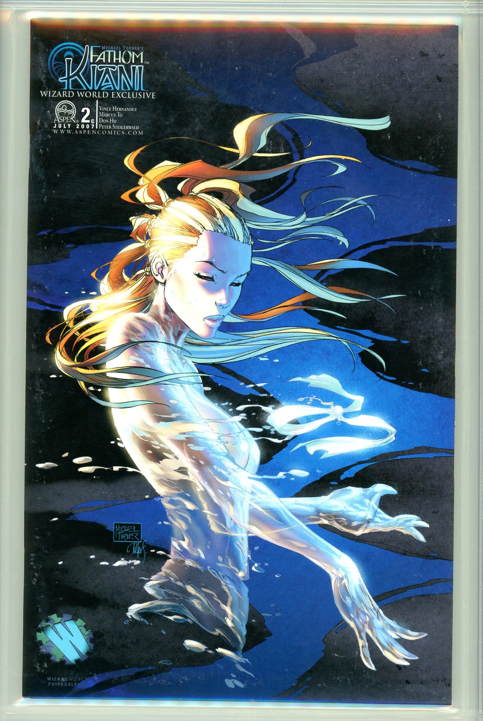 NOTE: there is a small piece of plastic at the back label on the left hand side (see image) - WIZARD WORLD PHILADELPHIA EXCLUSIVE 2007 - Aspen (publisher); 2nd highest graded (one graded higher); WIZARD WORLD EAST CON EDITION; Vince Hernandez story; Marcus To and Don Ho art; Michael Turner and Peter Steigerwald cover