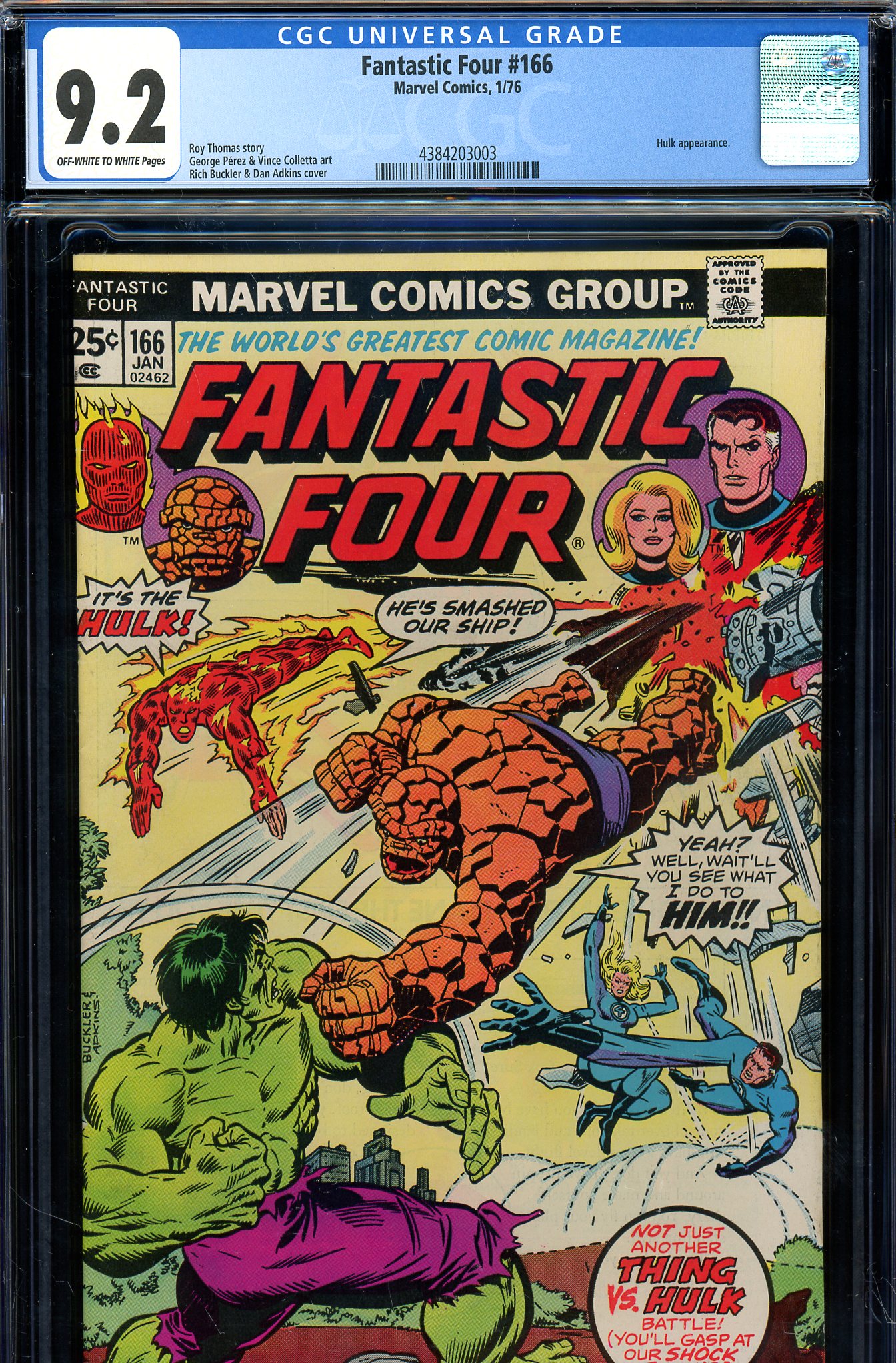 Fantastic Four #166 CGC NM- 9.2 Off-White to White